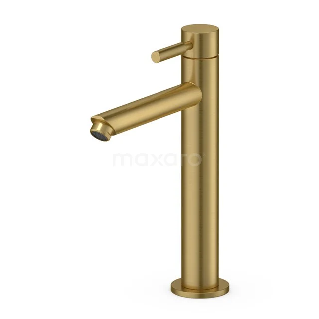 Deze gouden fonteinkraan uit de Radius-serie maakt uw fonteintje compleet en mag absoluut niet ontbreken in de toiletruimte. Dit hoge model is geschikt om te combineren met een waskom. Na een toiletbezoek wast u moeiteloos uw handen met behulp van de kraan. U bedient deze eenvoudig door middel van een hendel, waarmee u de kracht van de straal bepaalt. Zo zijn uw handen binnen no time terug brandschoon.
