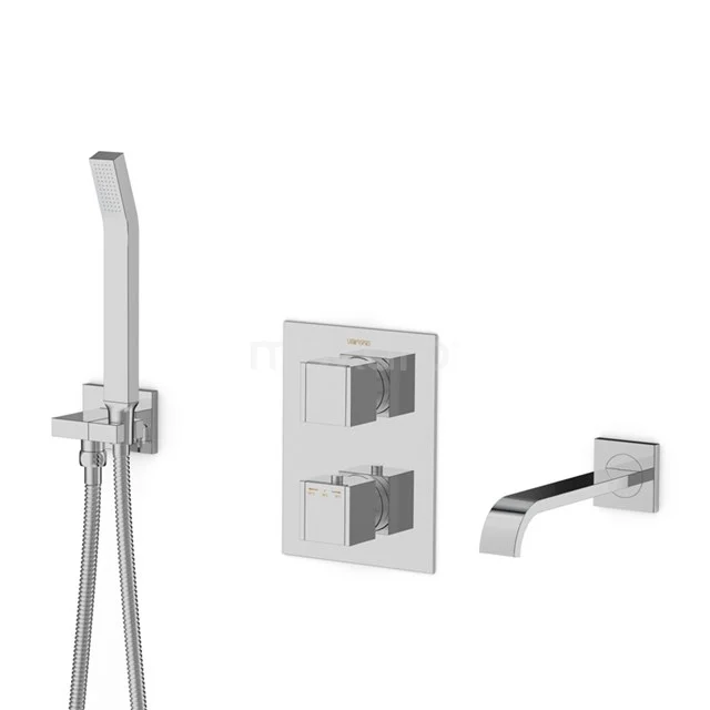 Deze thermostatische inbouw Blend-badkraan is de ideale keuze voor uw bad. Dit exemplaar is geschikt om tegen de wand te monteren en voorzien van een handdouche, handdouchehouder, doucheslang en baduitloop. De doucheslang is twist free en verdraait daardoor niet als u de handdouche beweegt. De thermostaatkraan heeft een glanzende, chromen afwerking en bestaat uit een combinatie van ronde en vierkante vormen. Zo haalt u een strak en elegant design in huis.