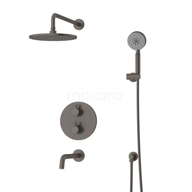 Deze prachtige inbouw bad- en regendoucheset uit de Radius-serie bestaat uit een thermostaatkraan, regendouche van 25 cm, baduitloop, wandarm, handdouche, handdouchehouder en doucheslang. Hiermee heeft u meteen alle benodigdheden om uw douchebad compleet te maken. Bovendien beschikt de set over Easy Clean.āÆZo maakt u deāÆsproeigaatjesāÆvan de hand- en regendouche eenvoudig kalkvrij.āÆ