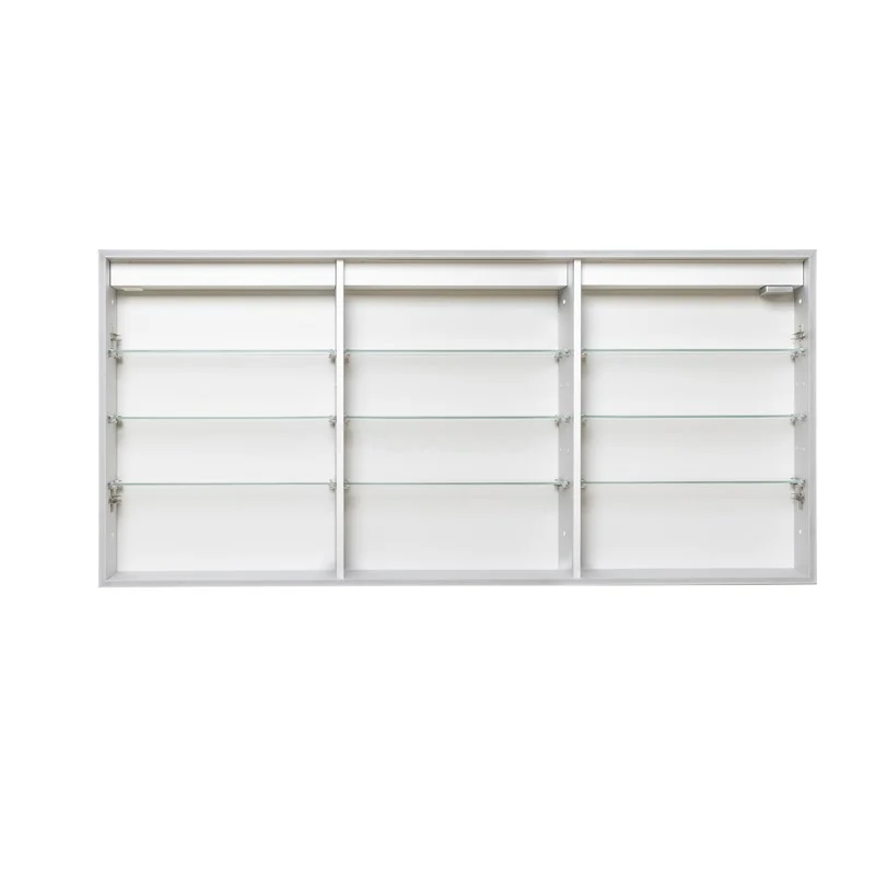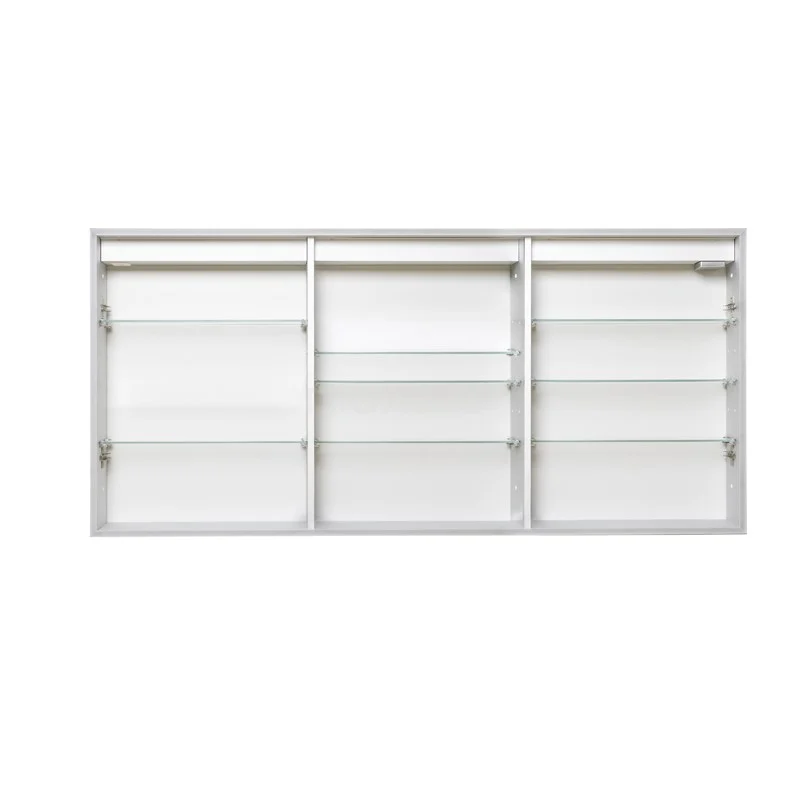 Dit prachtige exemplaar is uitgevoerd in aluminium en heeft een rechthoekig design. De strakke afwerking voorziet de spiegelkast van een minimalistische touch. Hierdoor komt de kast uitstekend tot zijn recht in een moderne stijl. De verlichting rondom de spiegel geeft het geheel een sfeervolle uitstraling. Bovendien zorgt de spiegel voor een ruimtelijk effect in uw badkamer.