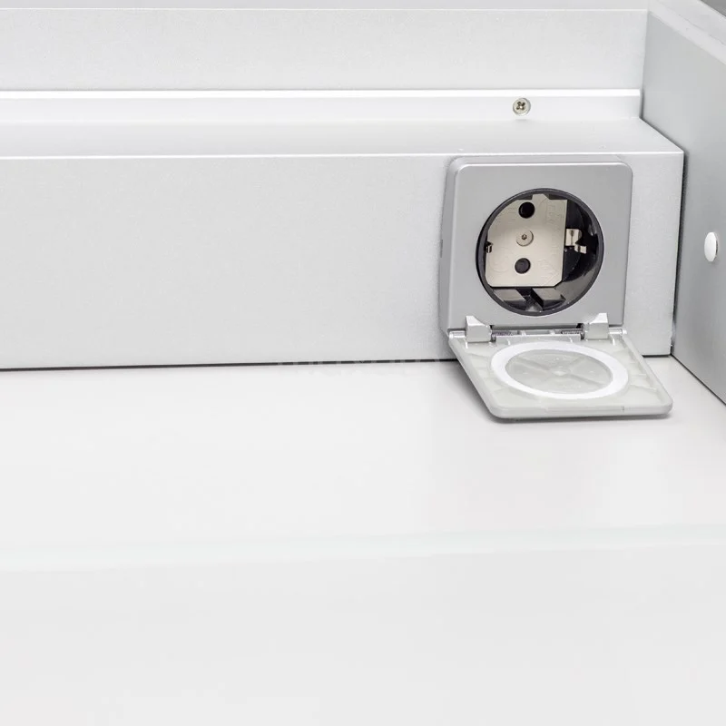 Dit prachtige exemplaar is uitgevoerd in aluminium en heeft een rechthoekig design. De strakke afwerking voorziet de spiegelkast van een minimalistische touch. Hierdoor komt de kast uitstekend tot zijn recht in een moderne stijl. De verlichting rondom de spiegel geeft het geheel een sfeervolle uitstraling. Bovendien zorgt de spiegel voor een ruimtelijk effect in uw badkamer.