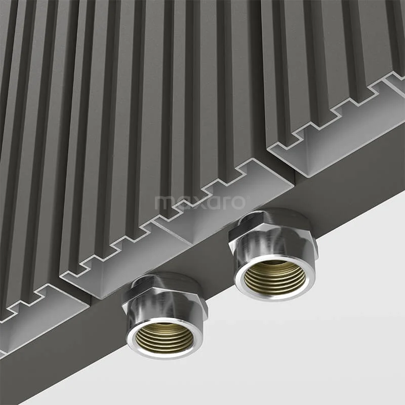 De radiator is voorzien van lamellen met lange, smalle inkepingen en heeft daardoor een bijzondere uitstraling. Daarnaast zorgt de donkergrijze metallic afwerking met subtiel aangebrachte glinstering voor een schitterende en luxueuze touch. Het stijlvolle uiterlijk van de radiator maakt uw interieur gegarandeerd compleet.